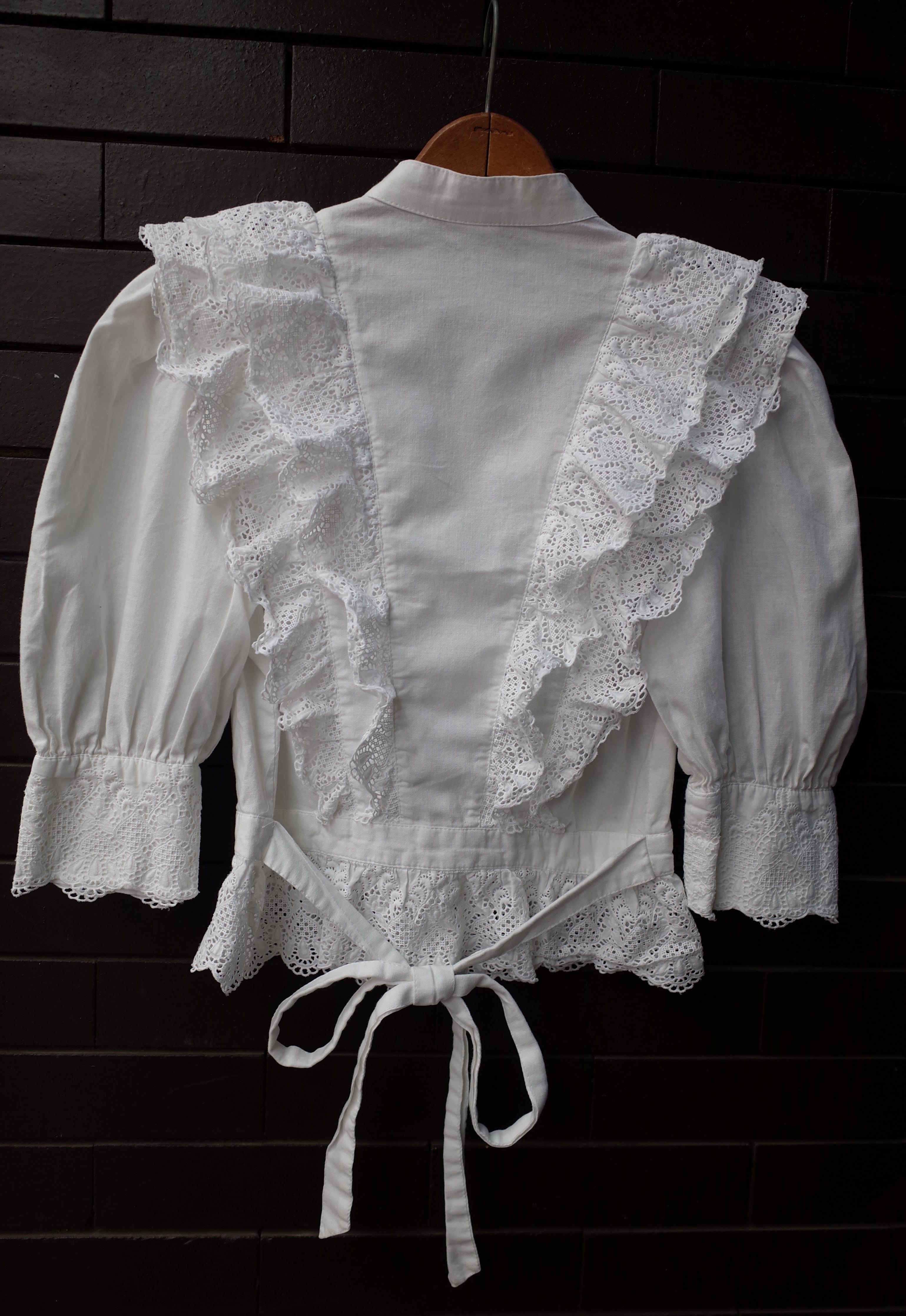 Made in Europe white cotton lace ruffle blouse ヨーロッパ製ホワイトコットンレースラッフルブラウス