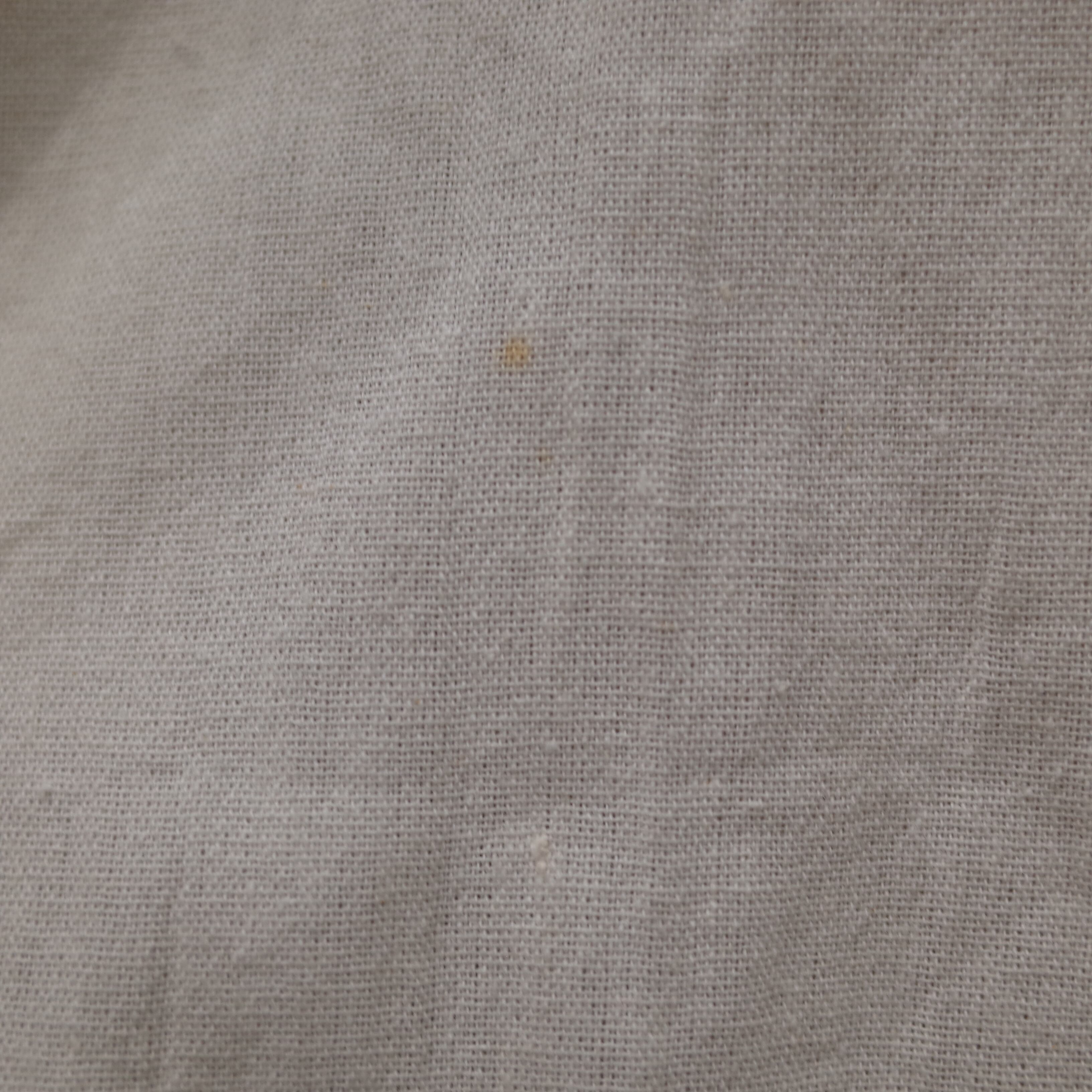 こちらの商品は、前身頃、後身頃、裾、左肩に若干の小さな汚れ、前身頃、右胸部分に小穴がございます。