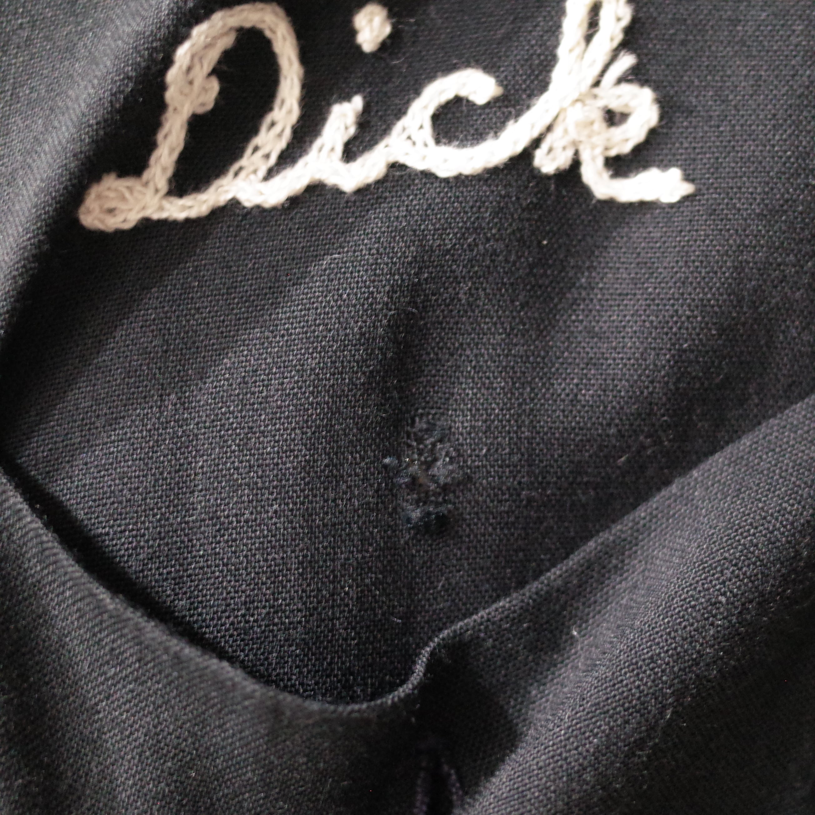 ボタンの留めてある生地にダメージがございます。