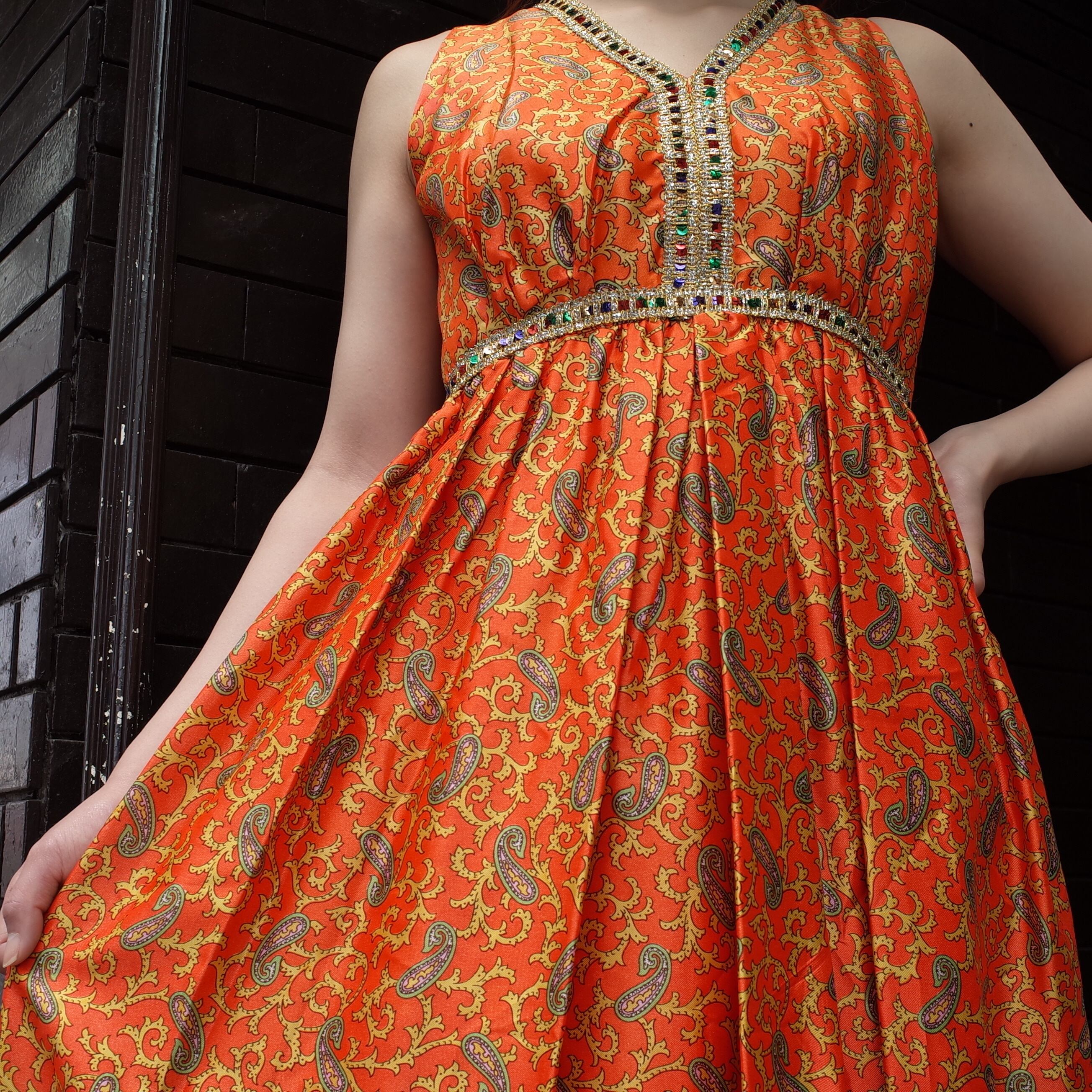70's paisley spangle dress 70年代 ペイズリー柄ワンピース