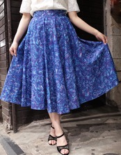 【SALE】50's style patterned circlar skirt《Blue 》総柄サーキュラースカート ブルー