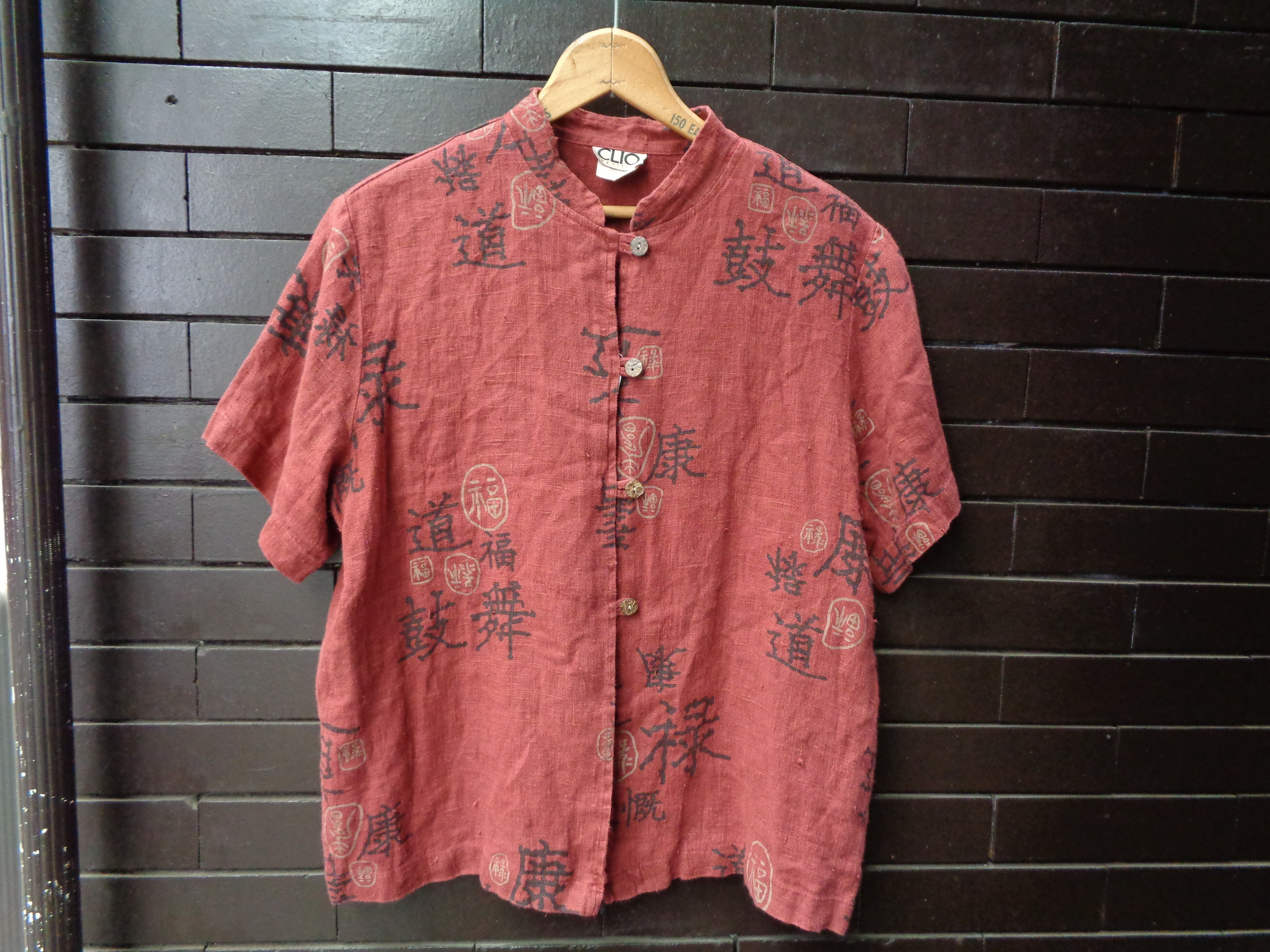 Oriental pattern linen shirts 漢字プリント リネンシャツ