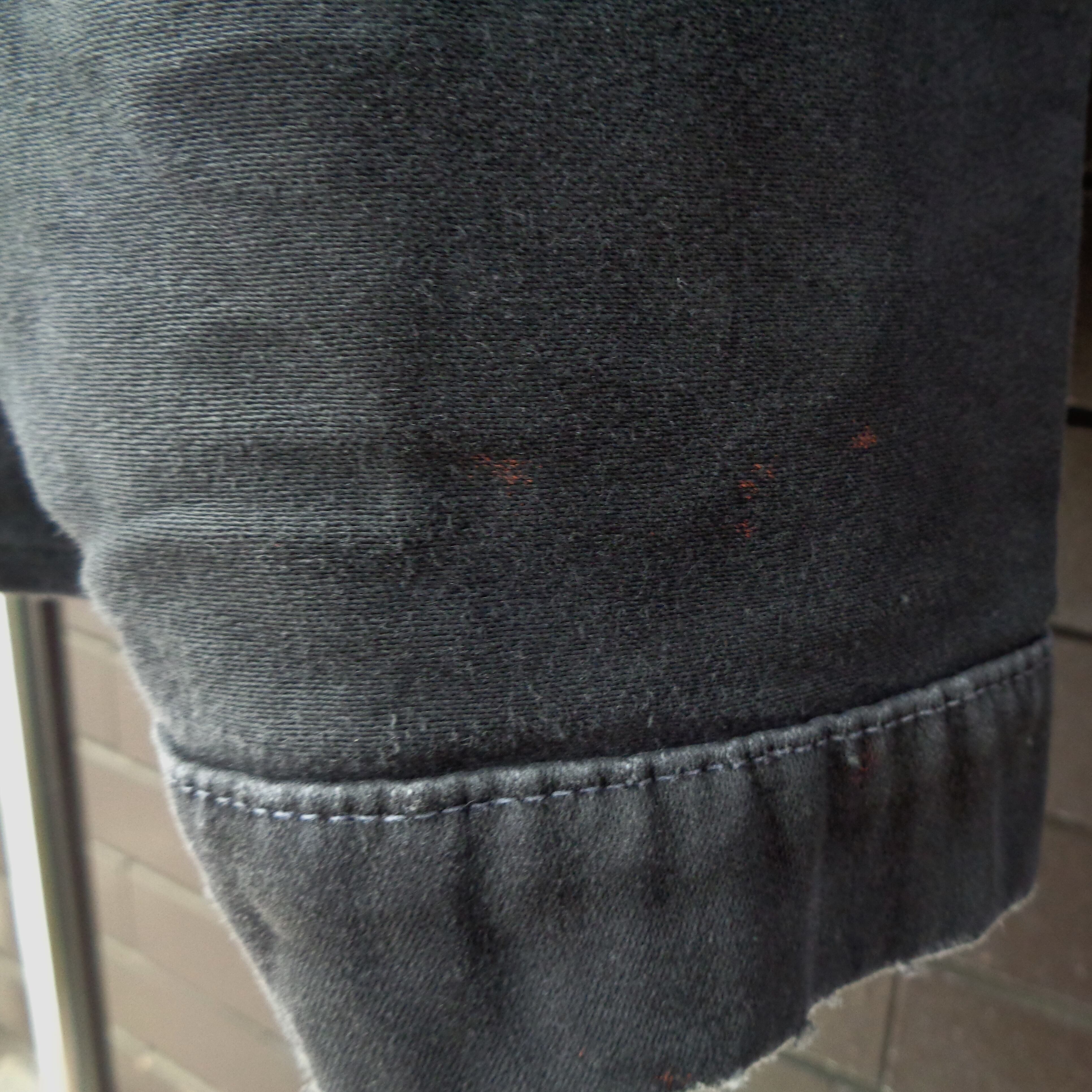こちらの商品は、襟元、左袖口に汚れ、両ポケット上部に穴、両袖口にダメージ、右肩上部にほつれ、襟裏にダメージがございます。