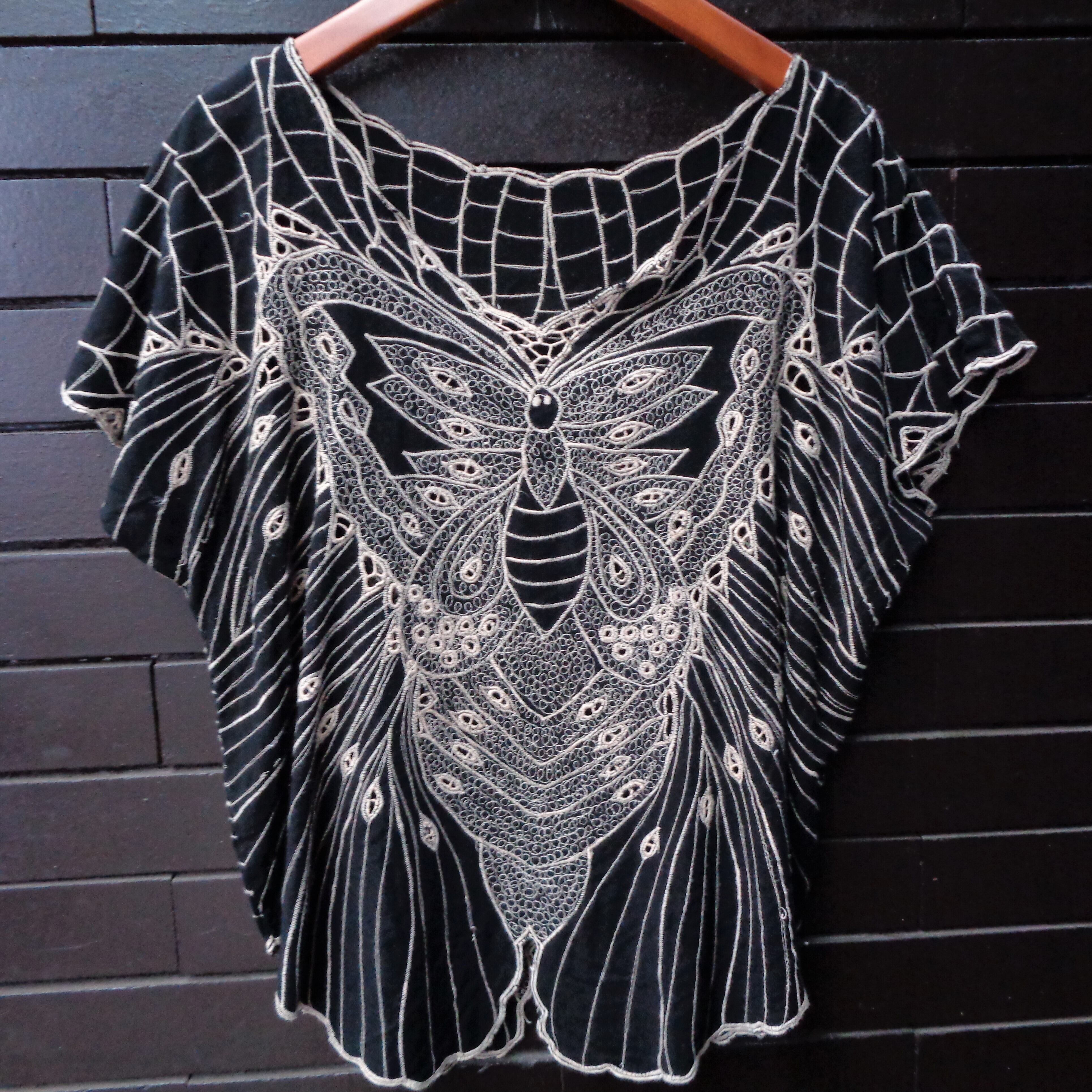 Butterfly design cutwork blouse バタフライ柄カットワーク半袖トップス