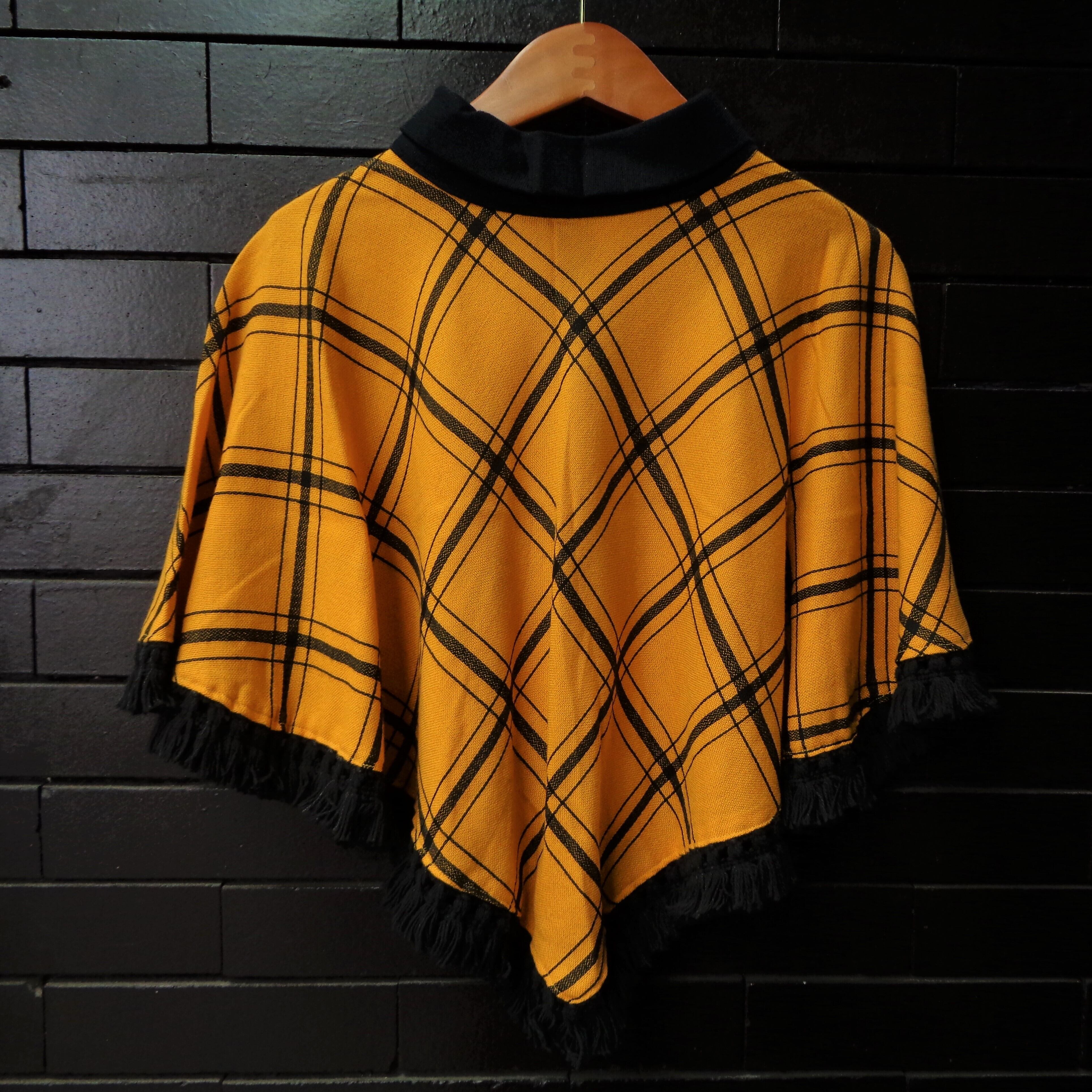 Vintage fringe checked pattern poncho ヴィンテージフリンジチェック柄ポンチョ