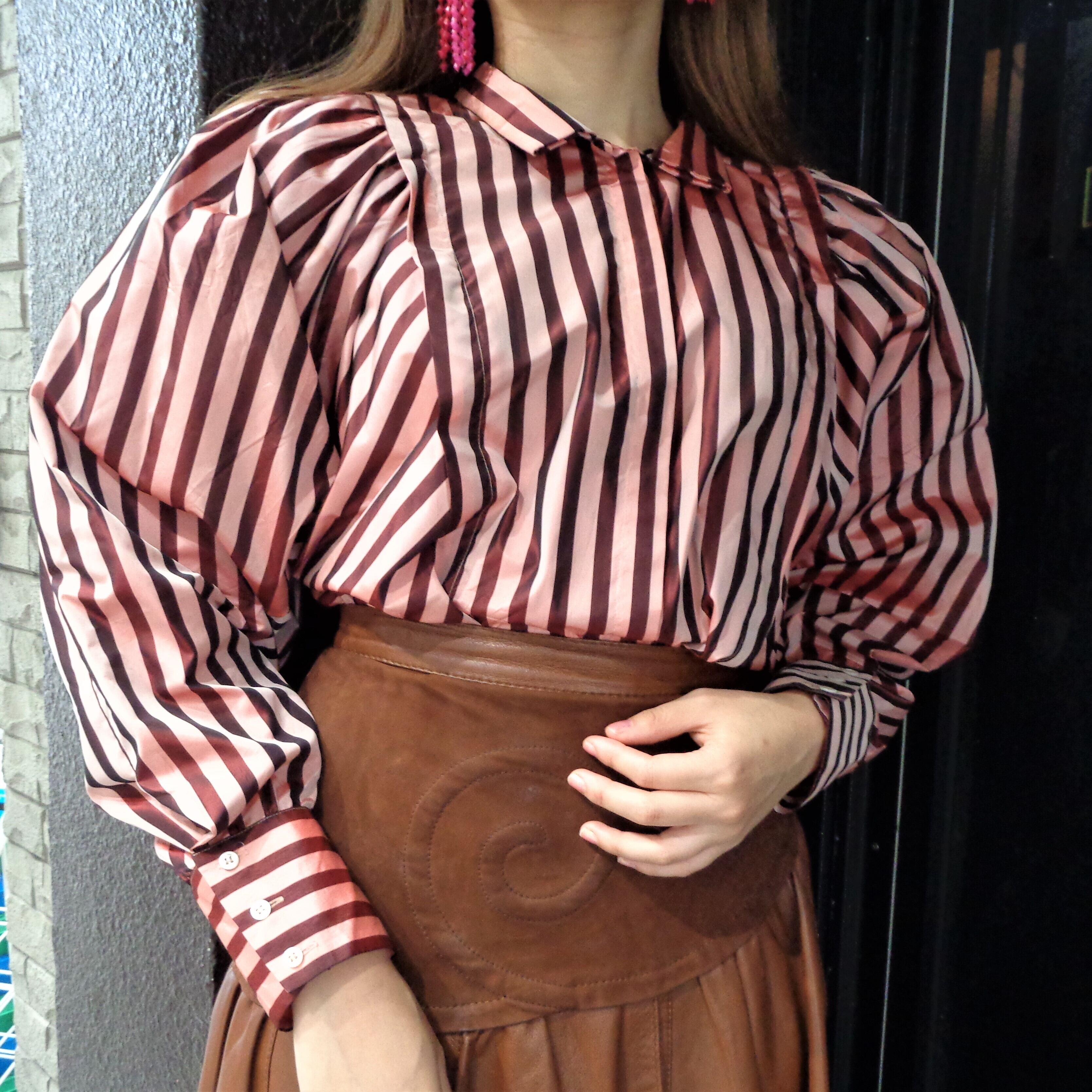 Puffsleeve stripe pattern blouse パフスリーブストライプ柄ブラウス
