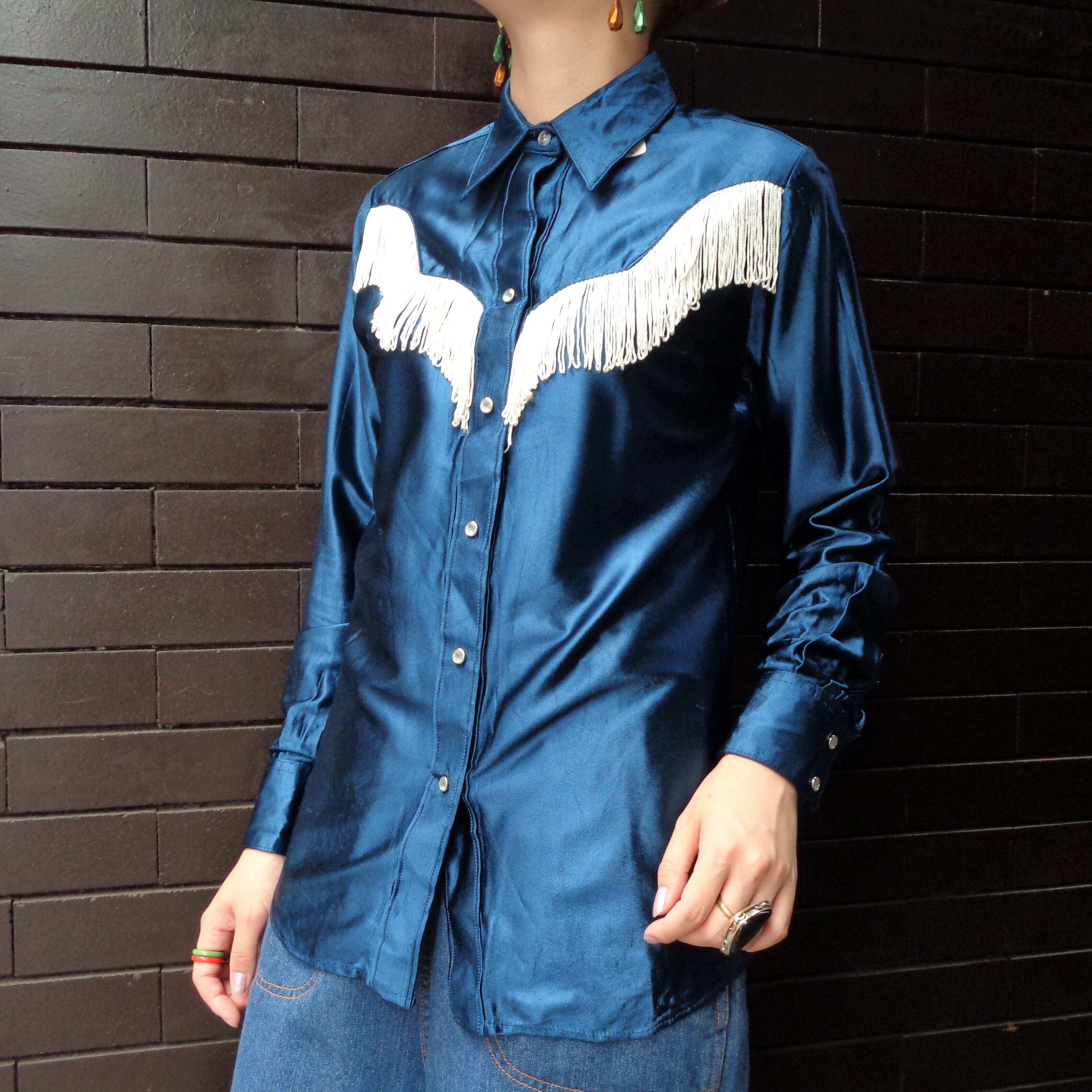 Fringe design satin western shirt フリンジデザイン サテンウエスタンシャツ