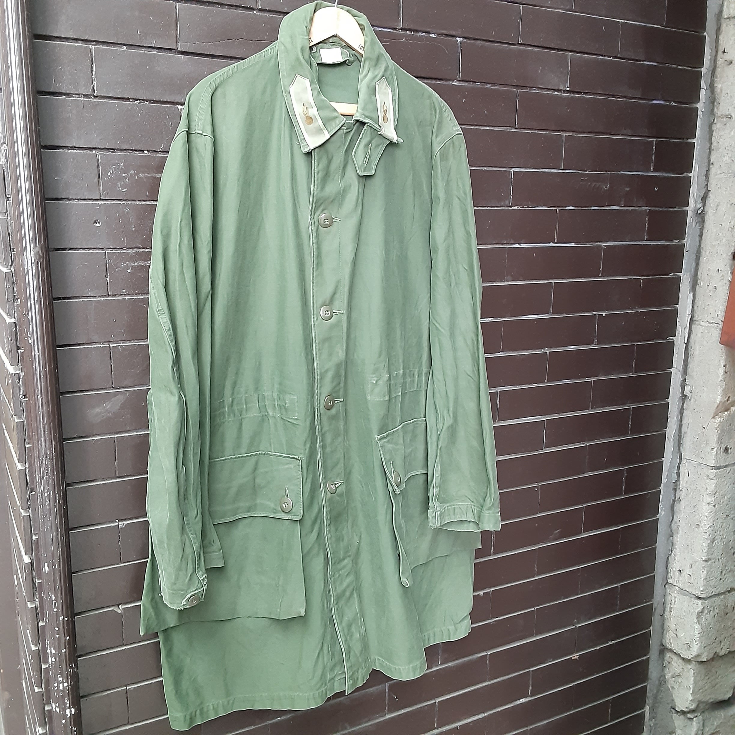 M-90の前身モデルとなり、主に60~80年代まで使われたM-59。ベーシックなステンカラーコートでありますが、襟のチンストラップ、大きめのフロントフラップポケットが特徴です。