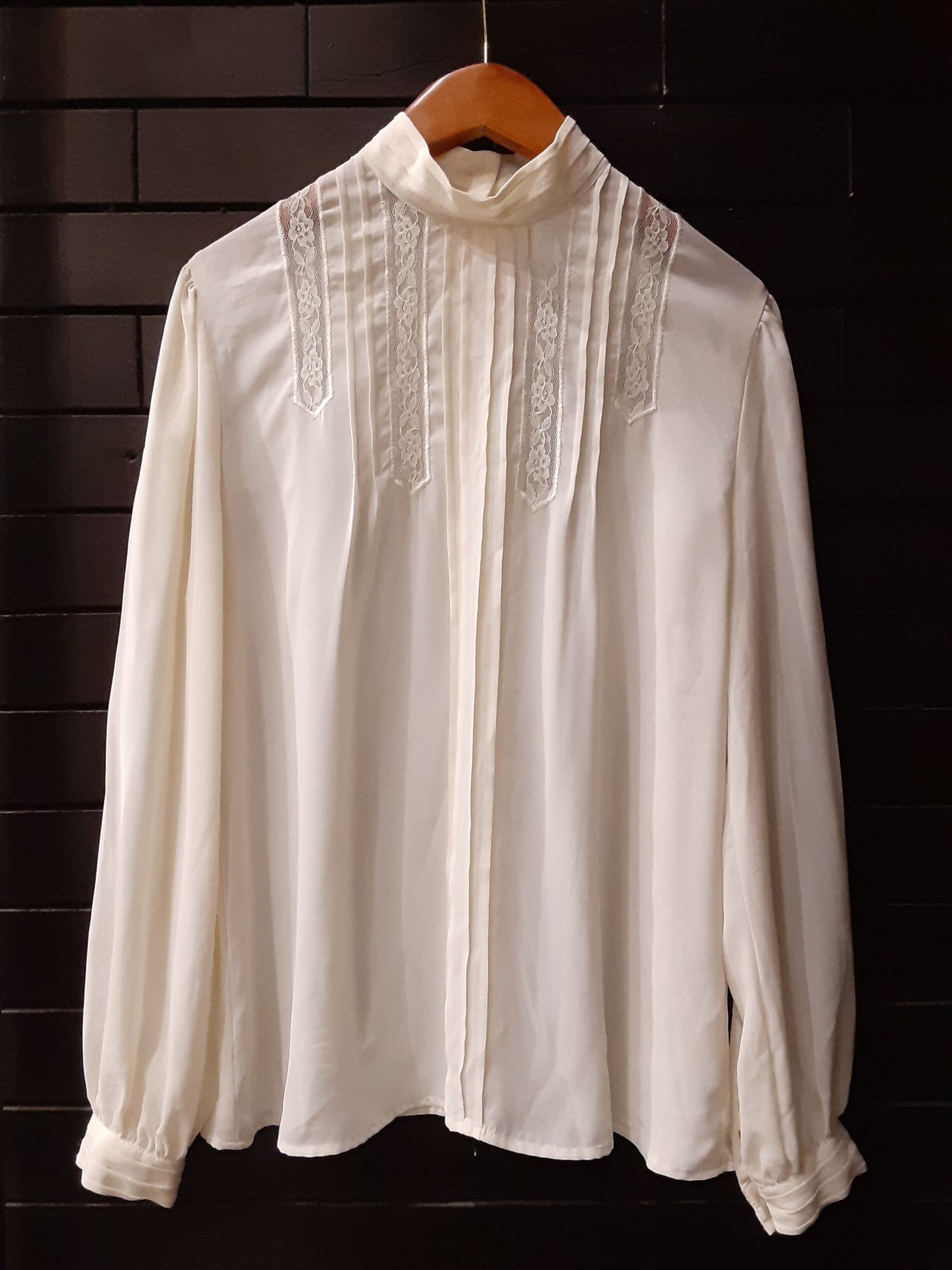 Lace design stand collar blouse レースデザインスタンドカラーブラウス