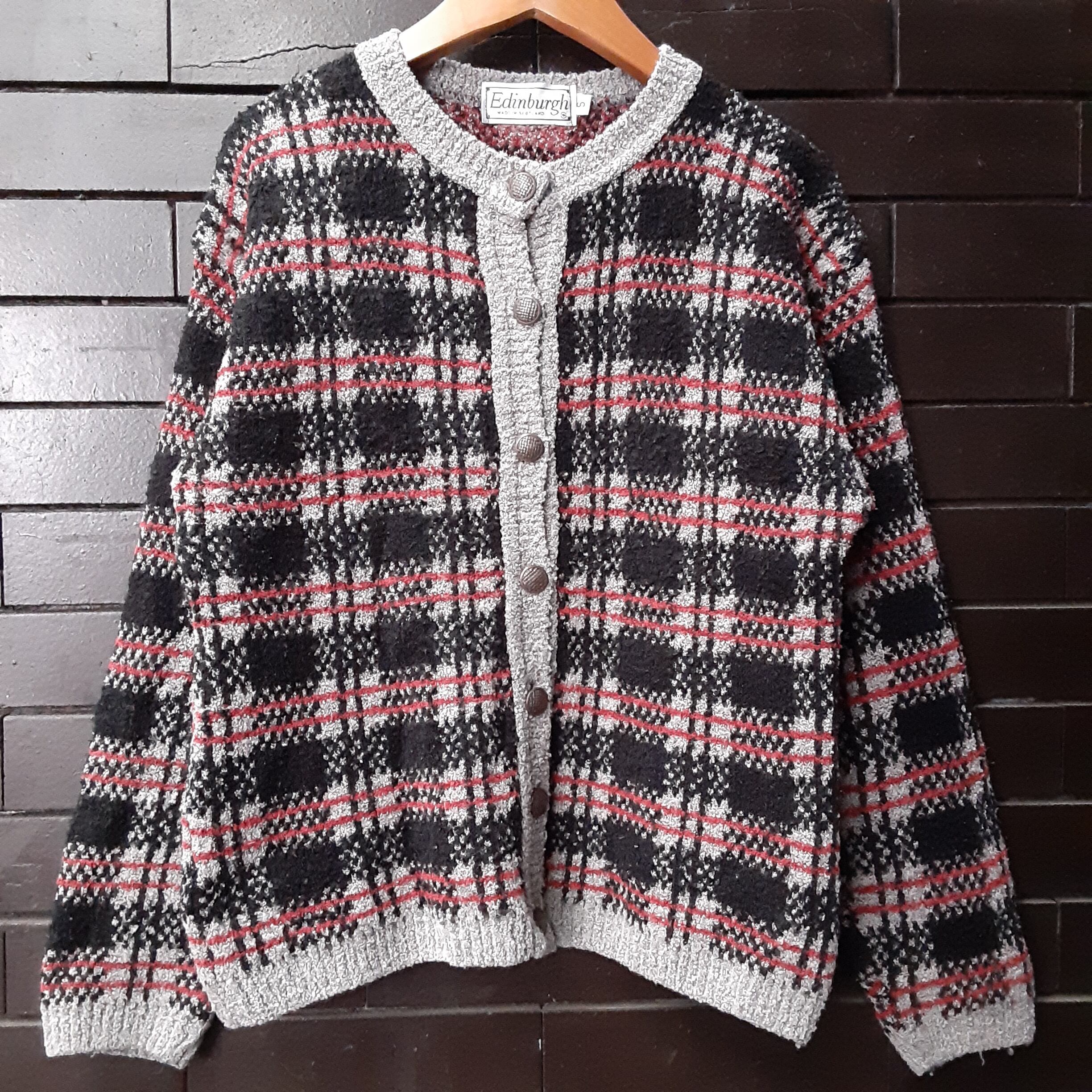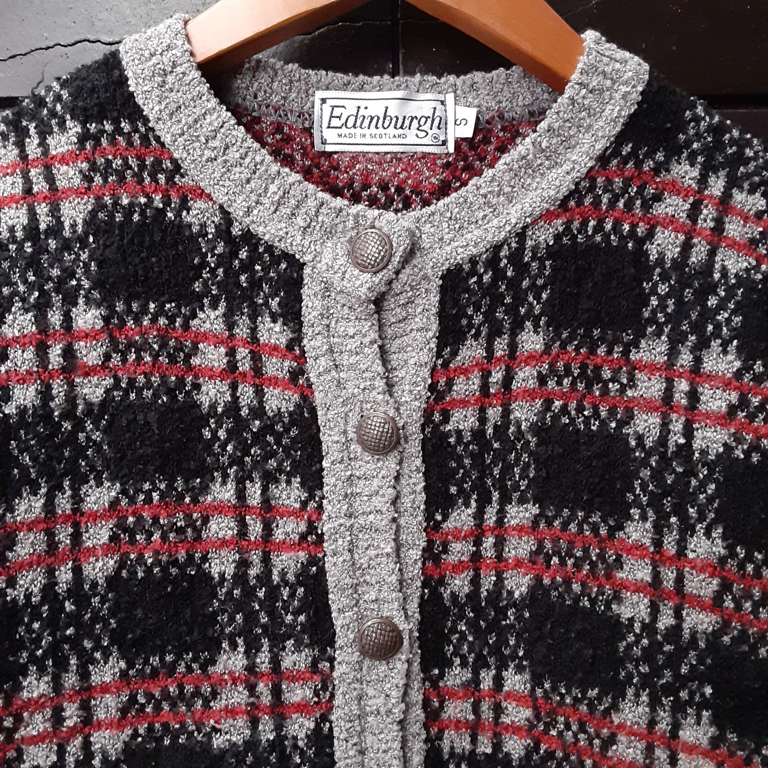 Check pattern Uneck cardigan チェック柄Uネックカーディガン
