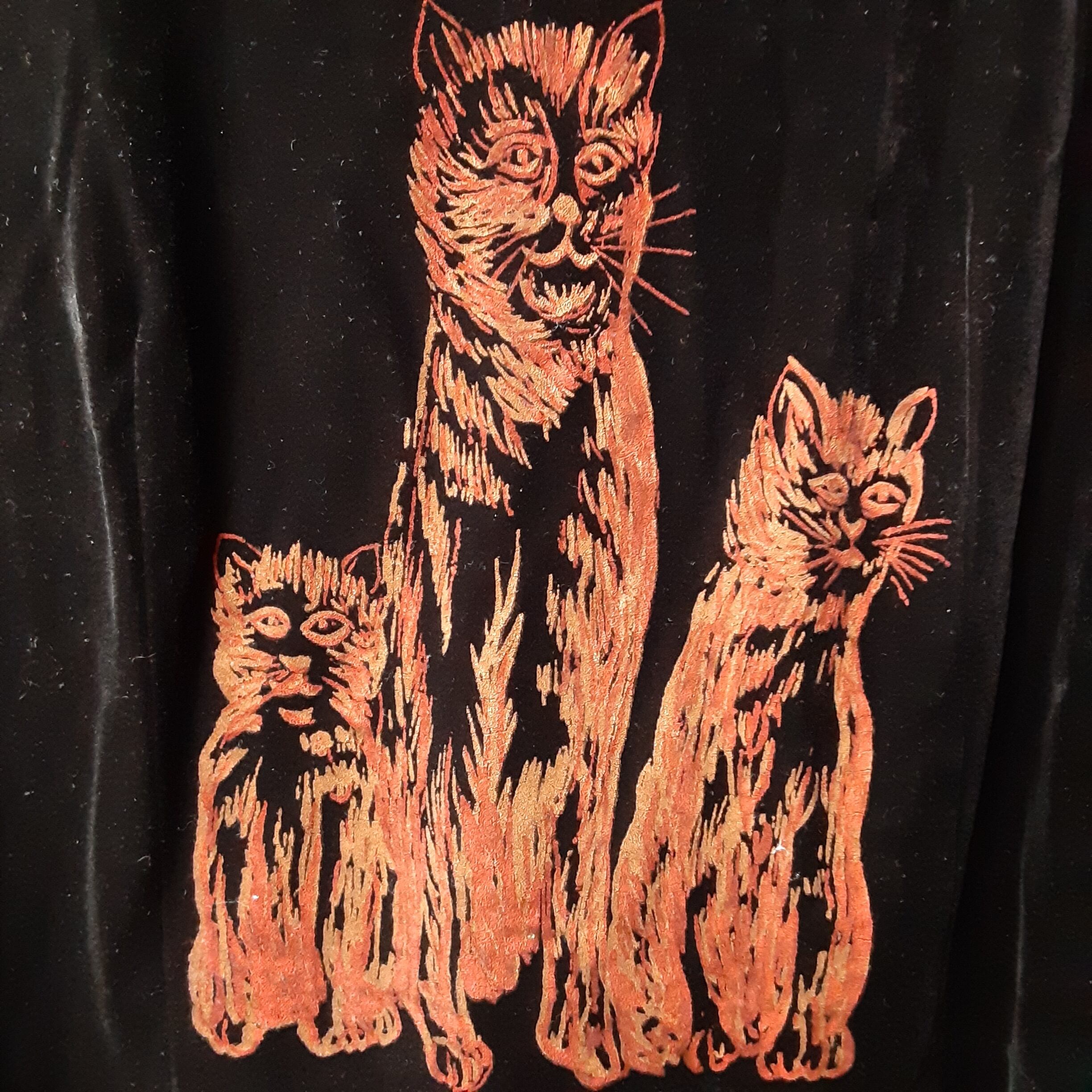 Vintage hand paint velour dress ヴィンテージキャットペイントワンピース
