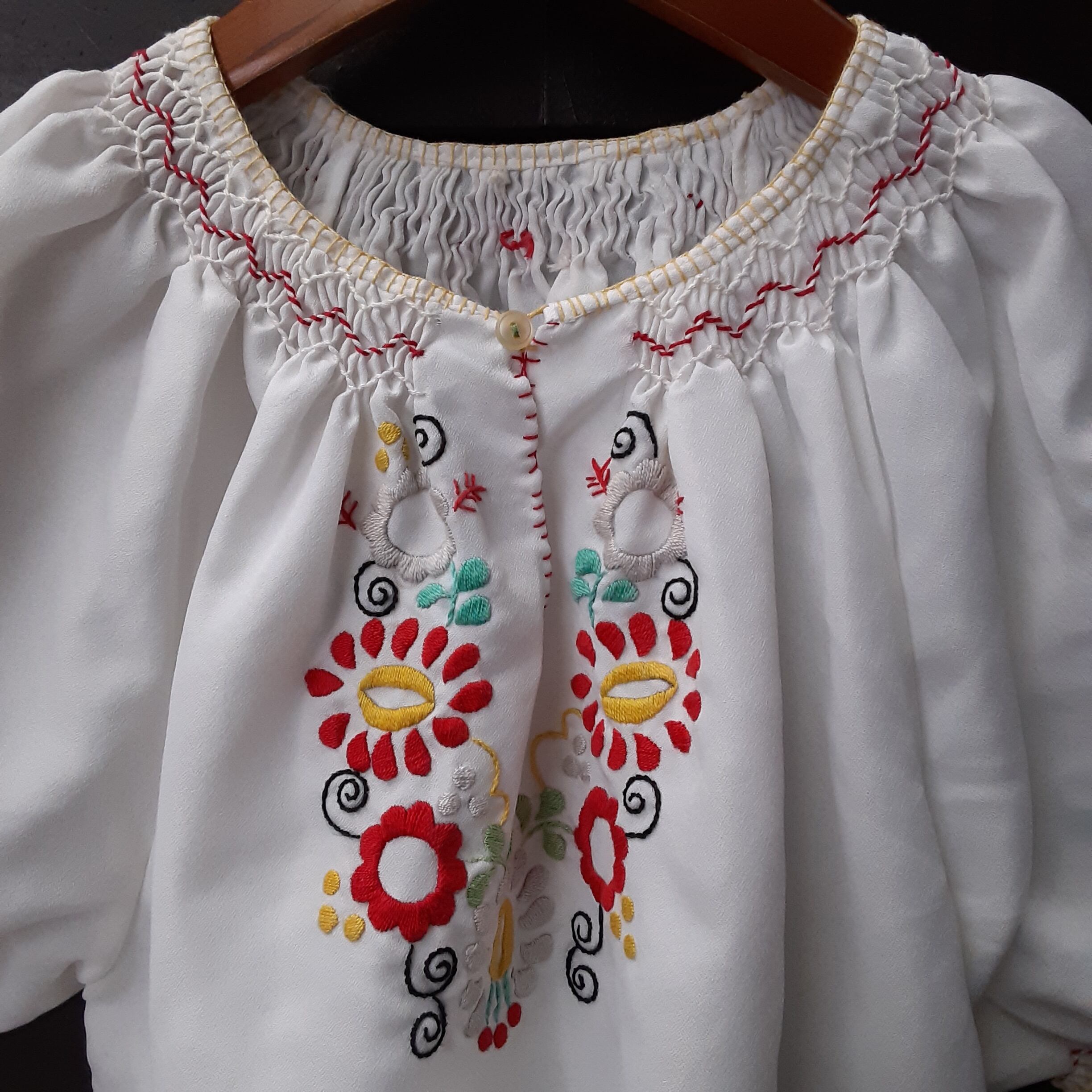 70's flower embroidery puff sleeve tunic 花刺繍パフスリーブチュニック