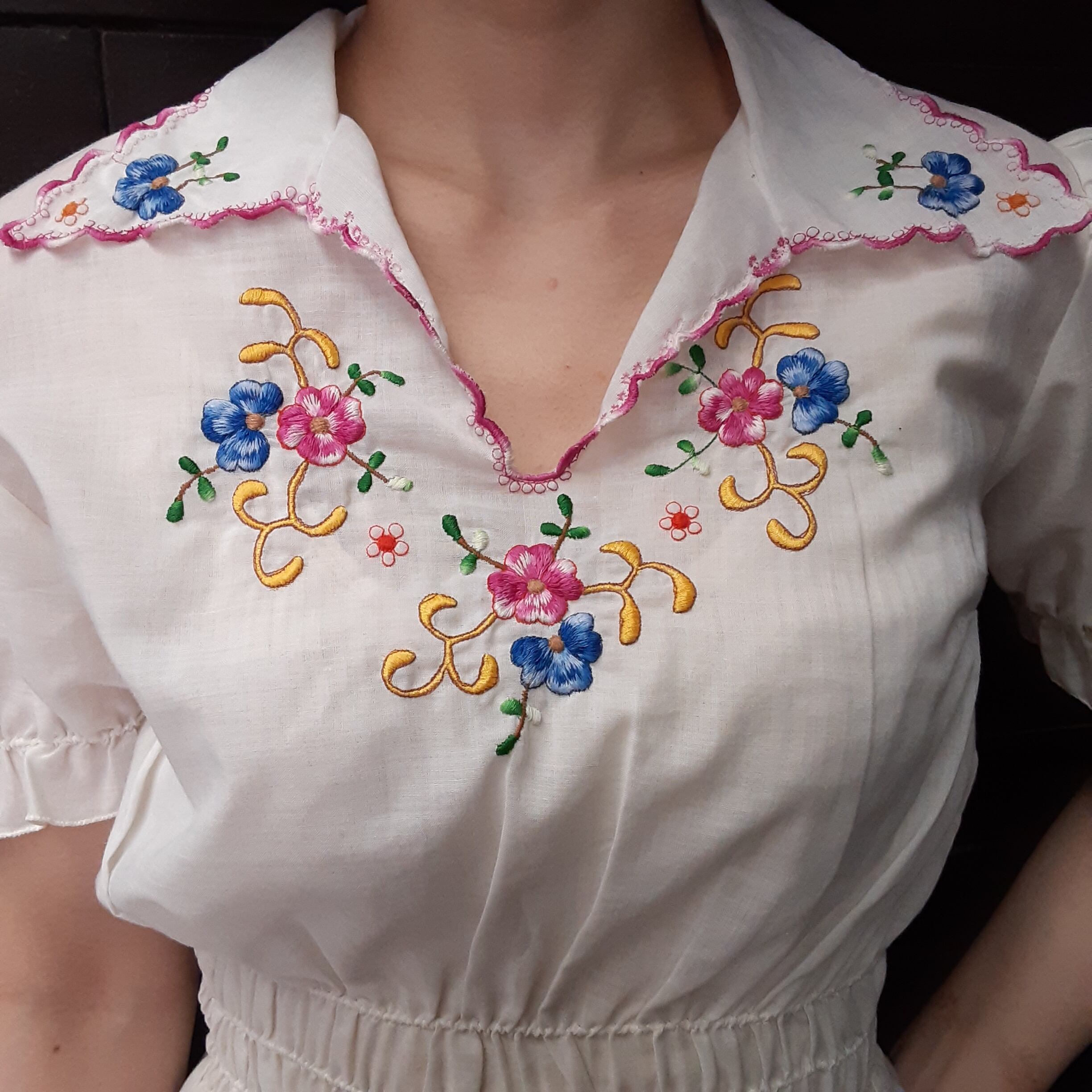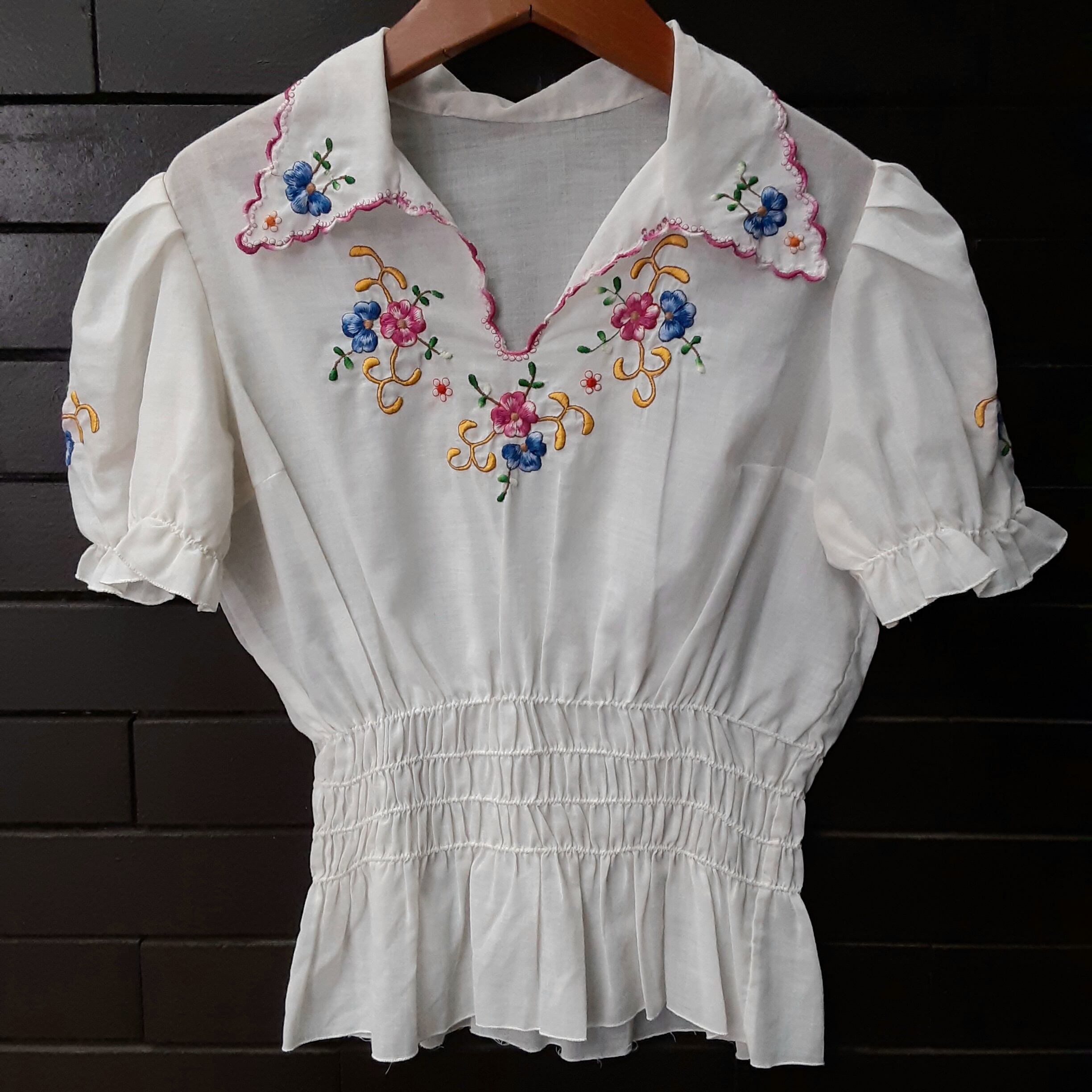 70's flower embroidery puff sleeve tunic 花刺繍パフスリーブチュニック