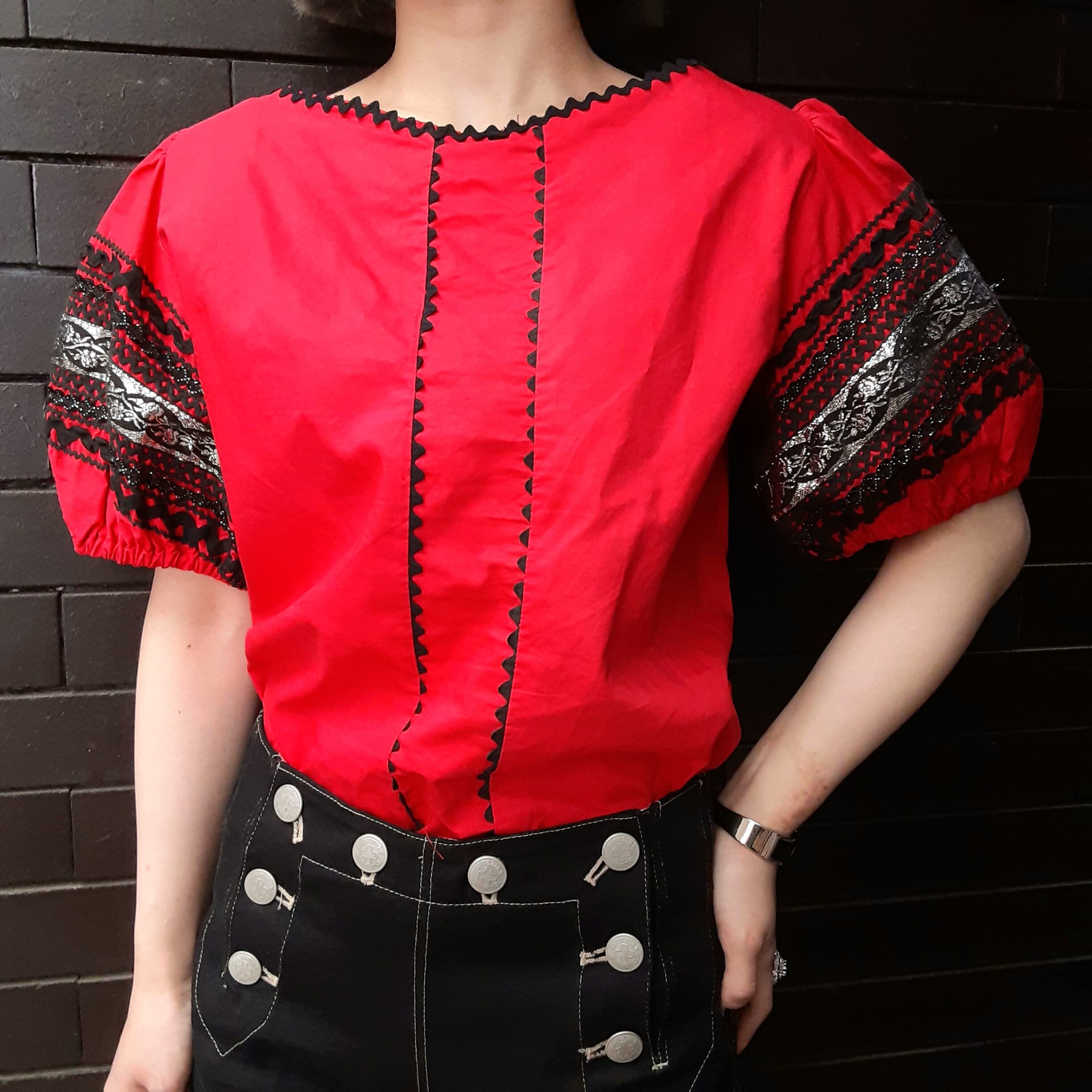 70's flower embroidery puff sleeve tunic 花刺繍パフスリーブチュニック