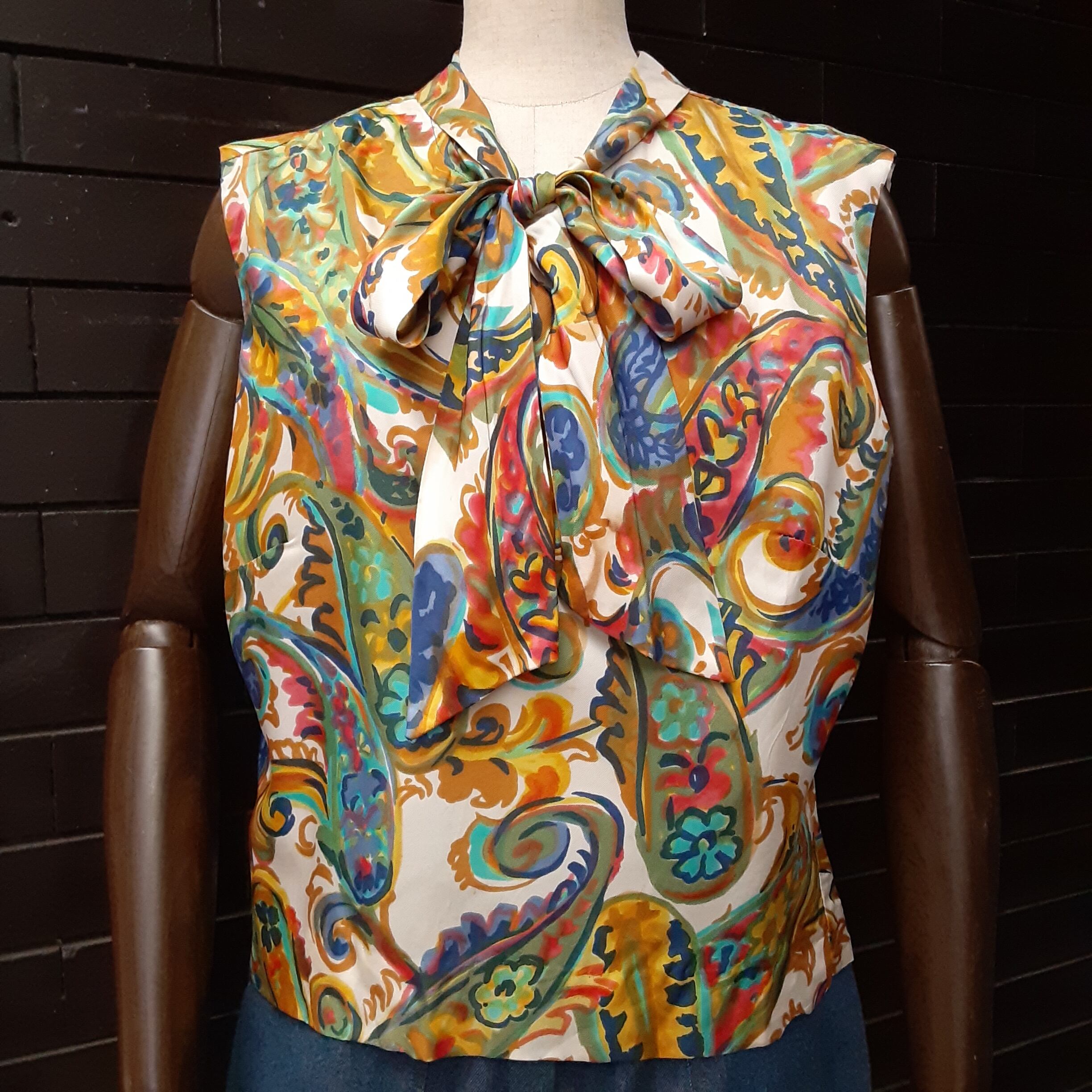 Hand paint design bowtie sleeveless tops ハンドペイントデザインボウタイノースリーブトップス