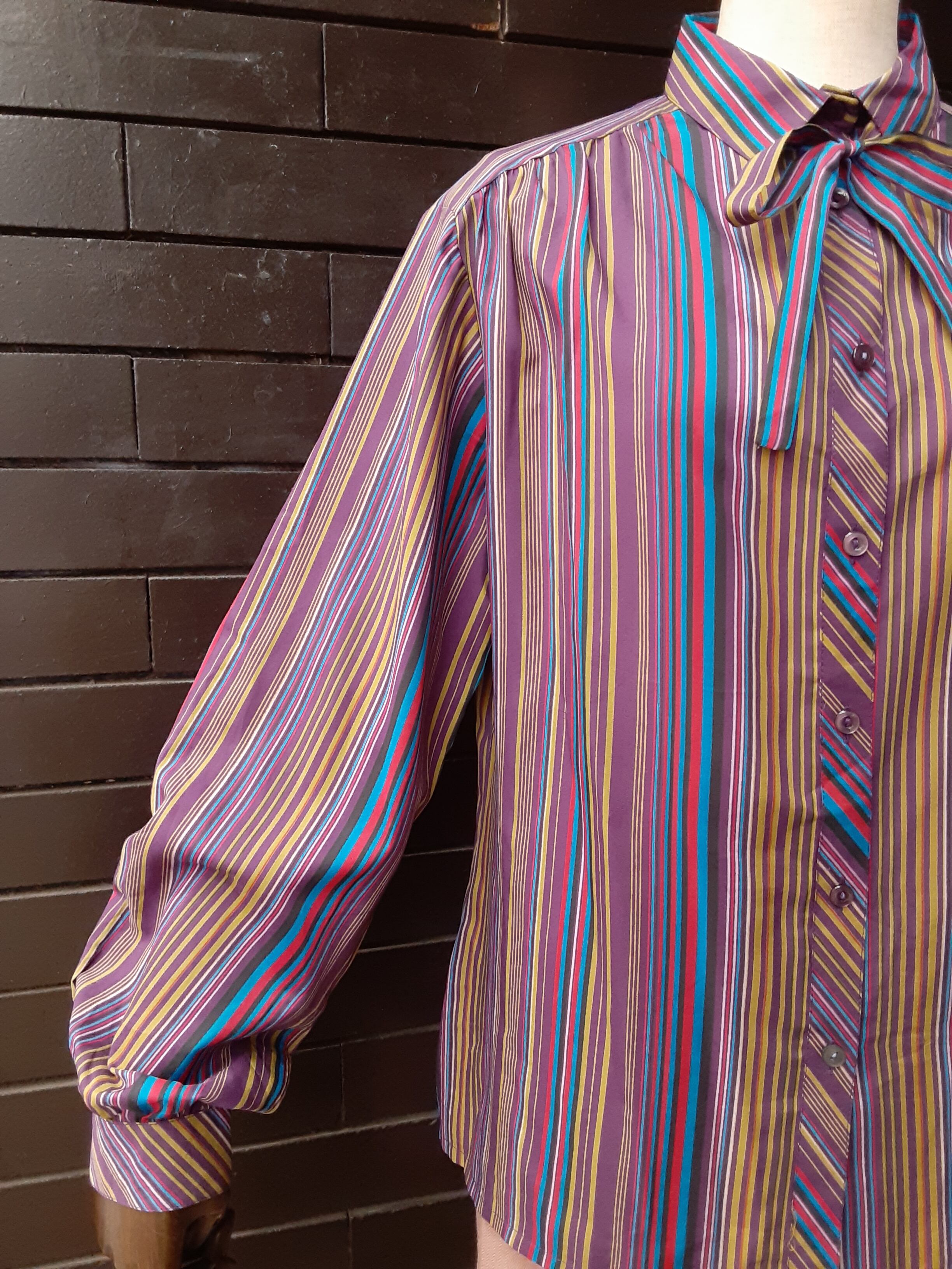 Stripe pattern ribbon tie blouse ストライプ柄ボウタイブラウス
